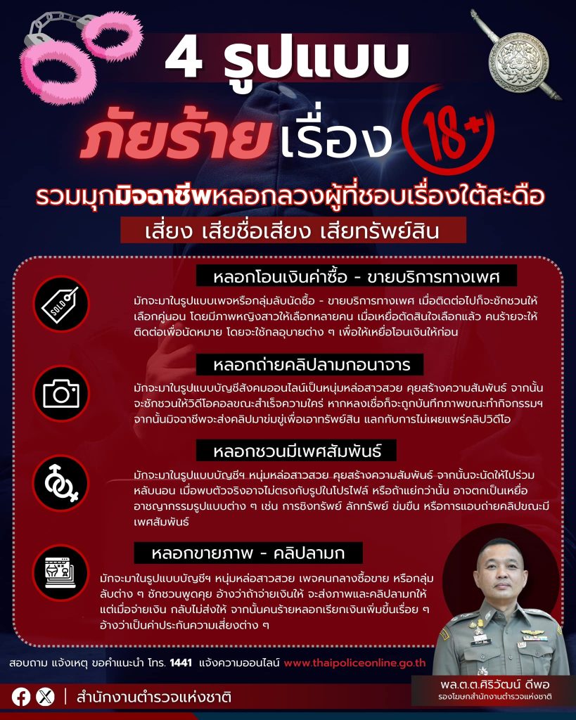สำนักงานตำรวจแห่งชาติเตือนสายใต้สะดือ ต้องระวัง 4 ภัยมิจฉาชีพ ที่พุ่งเป้ามาที่คุณ