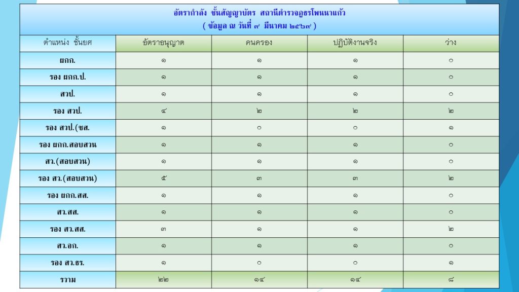แผนผังโครงสร้างสถานีตำรวจภูธรโพนนาแก้ว ข้อมูล ณ วันที่ 9 มีนาคม 2569